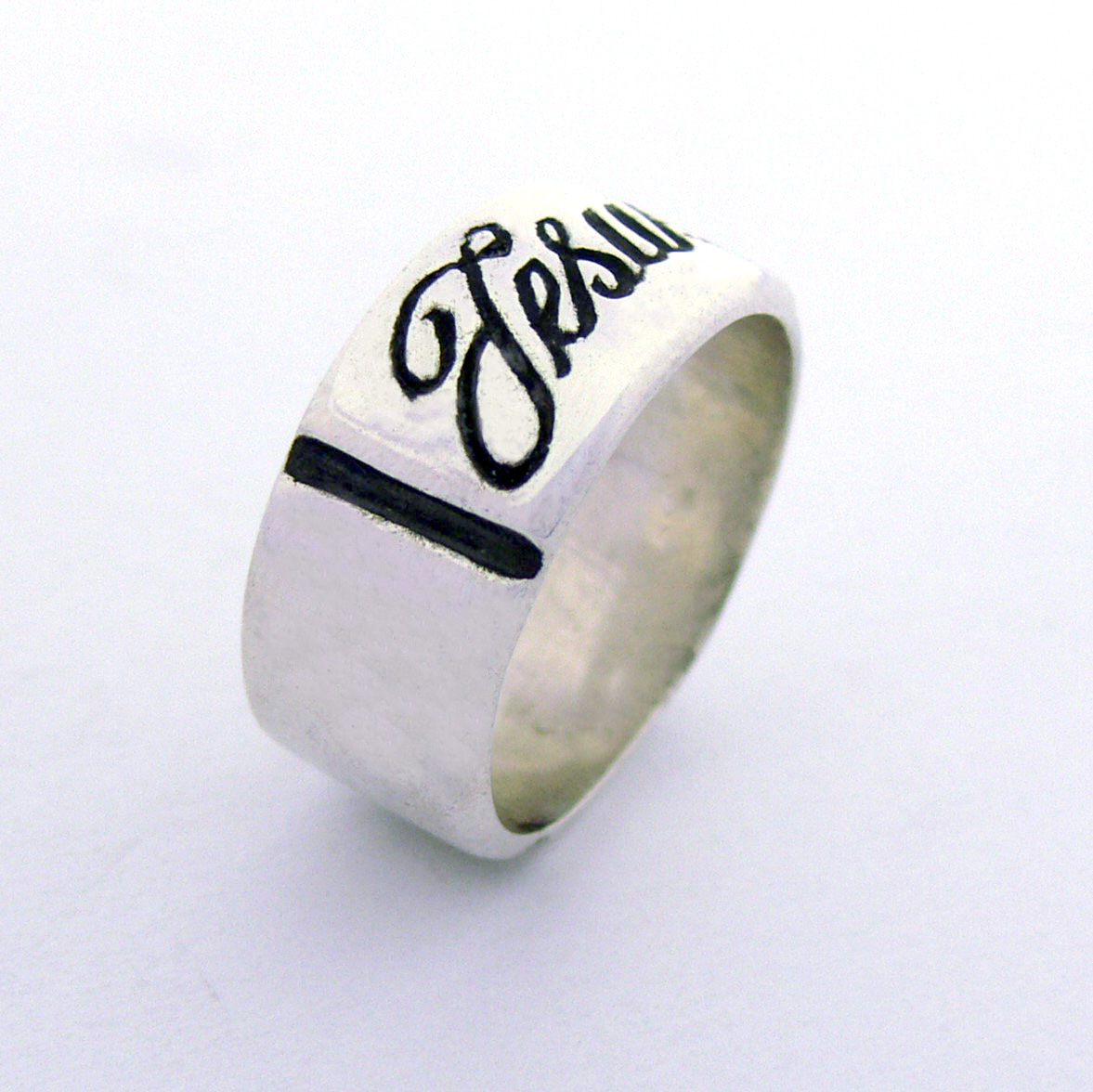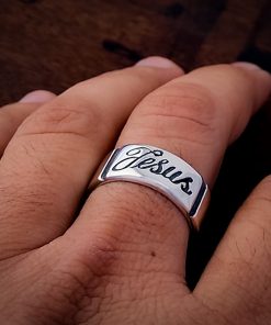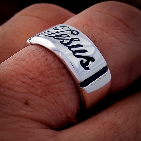 Anel de Prata escrito Jesus com detalhe oxidados